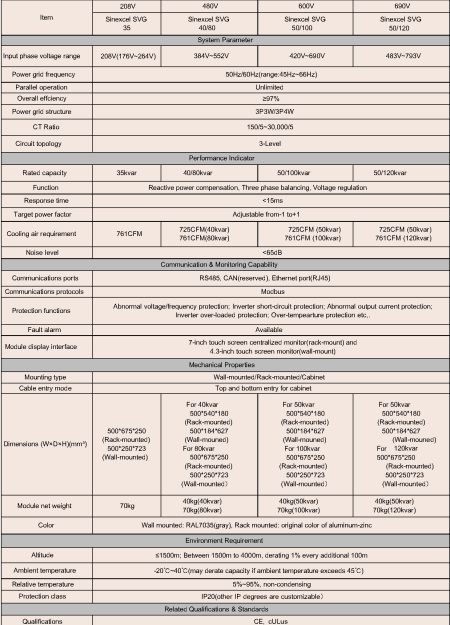 Presently Ultra SiC SVGs (and active filters) are only available to 480V. Above that voltage level another SVG range available from 208V to 690V. For renewable applications the SVGs up t0 800V are also available.